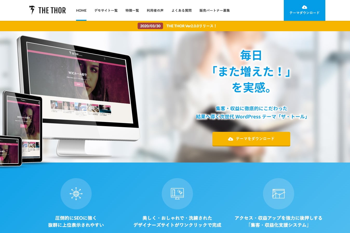THE THORは『LION BLOG』や『LION MEDIA』と同じ開発元で作られたWordPressテーマです。